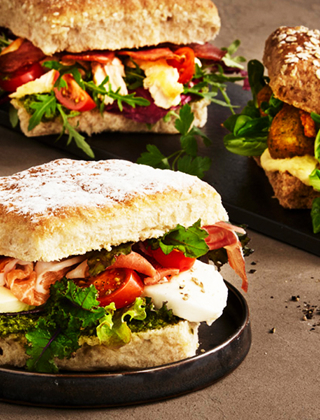 Pensles / sprayes med vand og drysses evt. med blanding af rugmel og sesam (efter inddeling).
