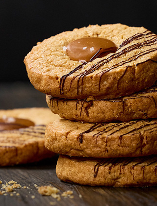 Straks efter bagning laves en fordybning i kagen, som fyldes med saltkaramel efter afkøling. Lad dem køle helt af på en rist. |