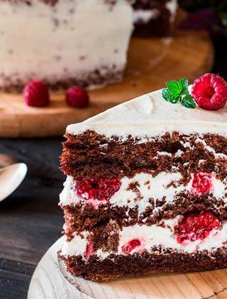 Saml lagkagen med et lag af solbærmarmelade og let pisket fløde i midten samt et lag flødeskum på toppen. Sigt eventuelt lidt kakao over. |