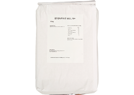 "Støvfrit" mel af NATUR+ hvede. Støvfrimel fremmer et bedre arbejdsmiljø. Anvendes hovedsageligt i rullende maskiner og på bage bordet, inden dejen lægger der.